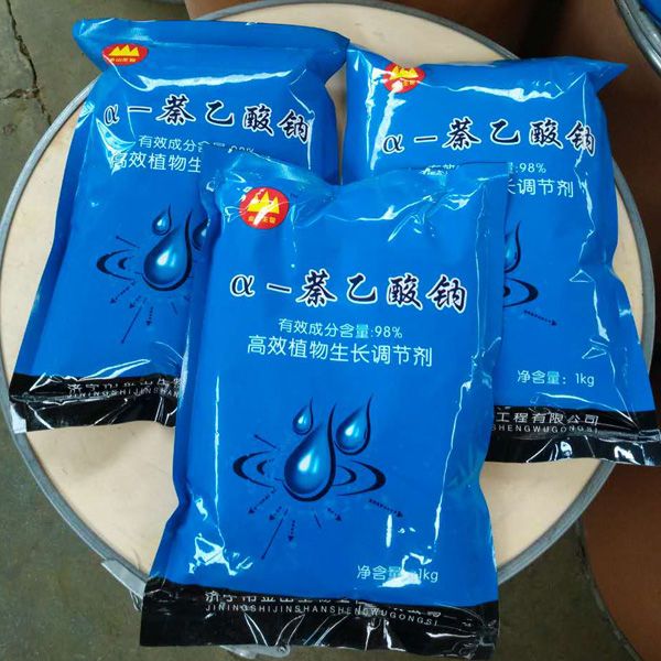 高純度α-萘乙酸鈉可單獨(dú)配成水劑、粉劑、乳油和其它劑型,具有高純度α-萘乙酸鈉的各種效果,用于促生長(zhǎng)、生根、?;?、保果等,用量一般為0.2-0.4克/畝。