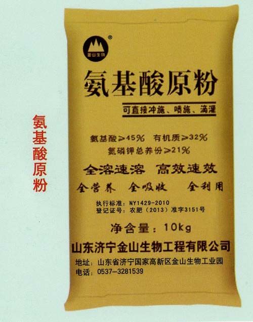產(chǎn)品特點(diǎn):本品為高蛋白氨基酸特補(bǔ)營(yíng)養(yǎng)粉,富含18種游離L-氨基酸,其中作物必須的氨基酸9種,各種氨基酸總含量45%以上。同時(shí)含有有機(jī)無機(jī)氮18.6%-22%,磷0.5%左右,鉀2.2%-4.4%,直接為植物吸收利用,有“植物奶”之美稱。全溶、速溶、吸收,利用。規(guī)格:10kg